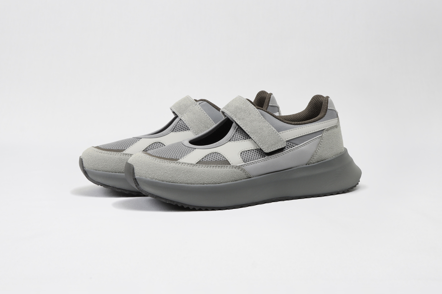 長く学生に親しまれてきたジャガーシリーズをベースにしたJAGUAR JOG 1を着脱しやすいバンド構造にしたモデルです。メッシュと起毛素材を組み合わせたレトロな雰囲気のアッパーに、軽量でクッション性の高い厚めのソールを組み合わせ、今のライフスタイルに合わせてモダナイズしました。